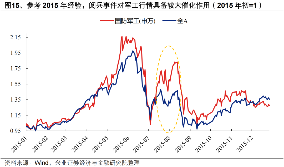 一方面,参考历史训戒,检阅等事件将对军工行情组成关键催化。检阅行动展示国度军事实力的关键时刻,是推动军工板块高涨的关键催化剂。回来2015年9月3日的寰宇反法西斯干戈得手70周年大检阅,7月9日起军工板块行情就运转反应检阅事件的预期,至8月17日区间收益为78%,相对全A逾额收益45%。改日一段时代,军工板块或处于事件催化的高涨预期之中。