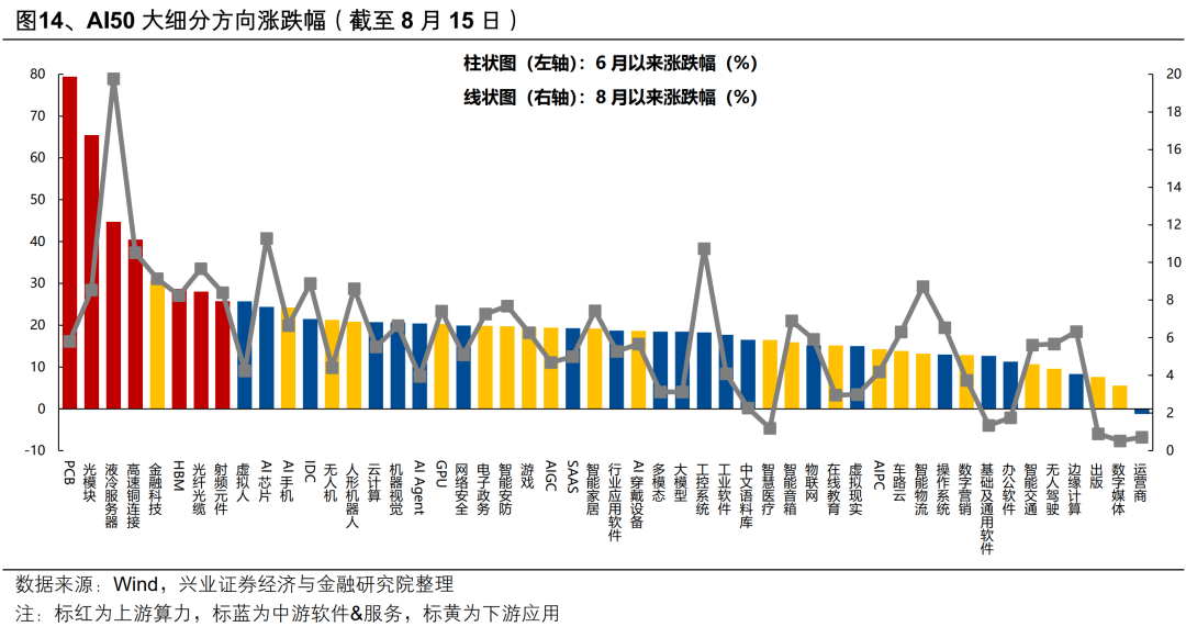 从AI细分地点的累计涨跌幅来看,AI板块里面向国产算力和中下流讹诈的扩散,依然是赔率较高的选择。诚然如故进行了一轮扩散,但PCB、光模块等北好意思算力链仍然相对于产业链其他地点积贮较大逾额涨幅。AI板块里面向国产算力和中下流讹诈的扩散,依然是现时赔率较高的选择。