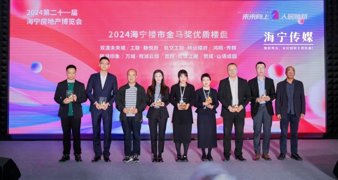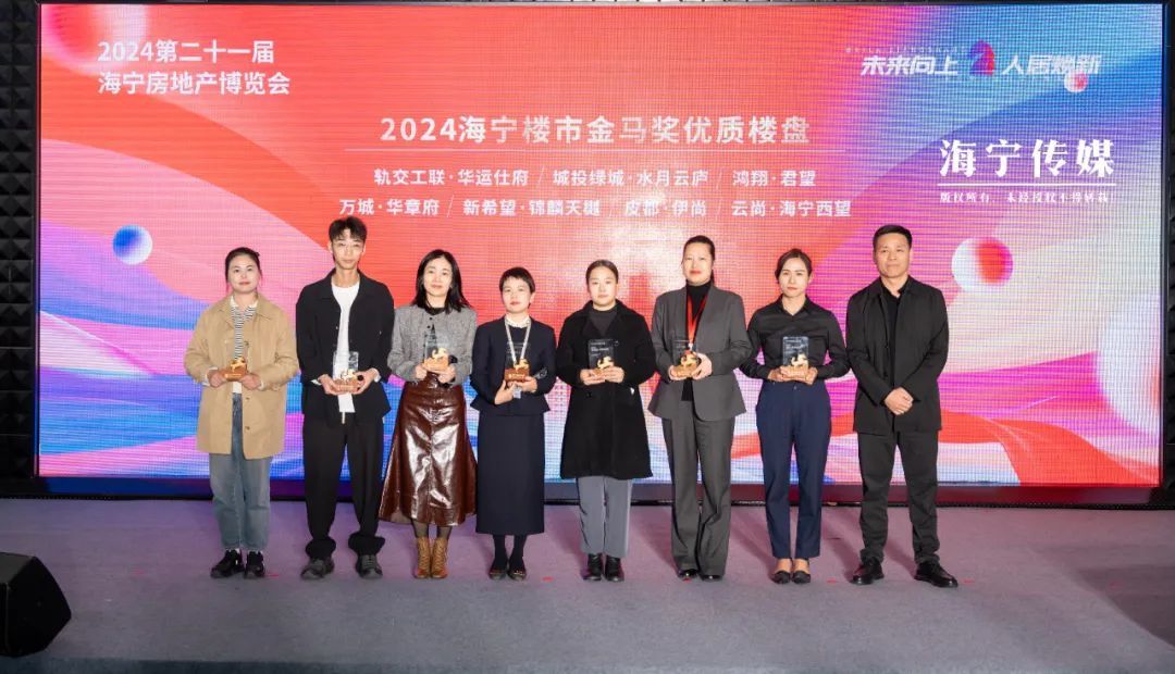 当晚,第十一届海宁楼市金马奖也同步揭晓,轨交工联·华运仕府、城投绿城·水月云庐、鸿翔·君望、万城·华章府、新但愿·锦麟天樾、皮都·伊尚、云尚·海宁西望、双漾异日城、工联·静悦府、轨交工联·映运蝶府、鸿翔·传麒、鹃湖印象、万城·不雅湖云邸、吉翔·不雅塘江樾、歌颂·山语成园15个楼盘赢得了“2024海宁楼市金马奖优质楼盘”。
